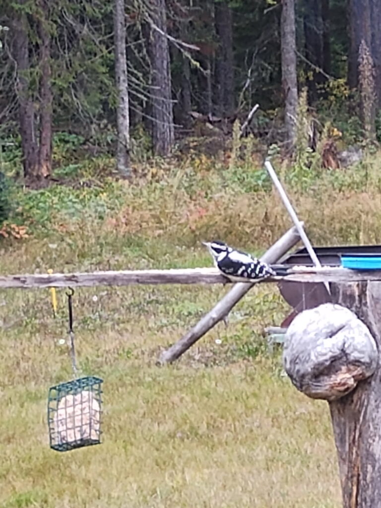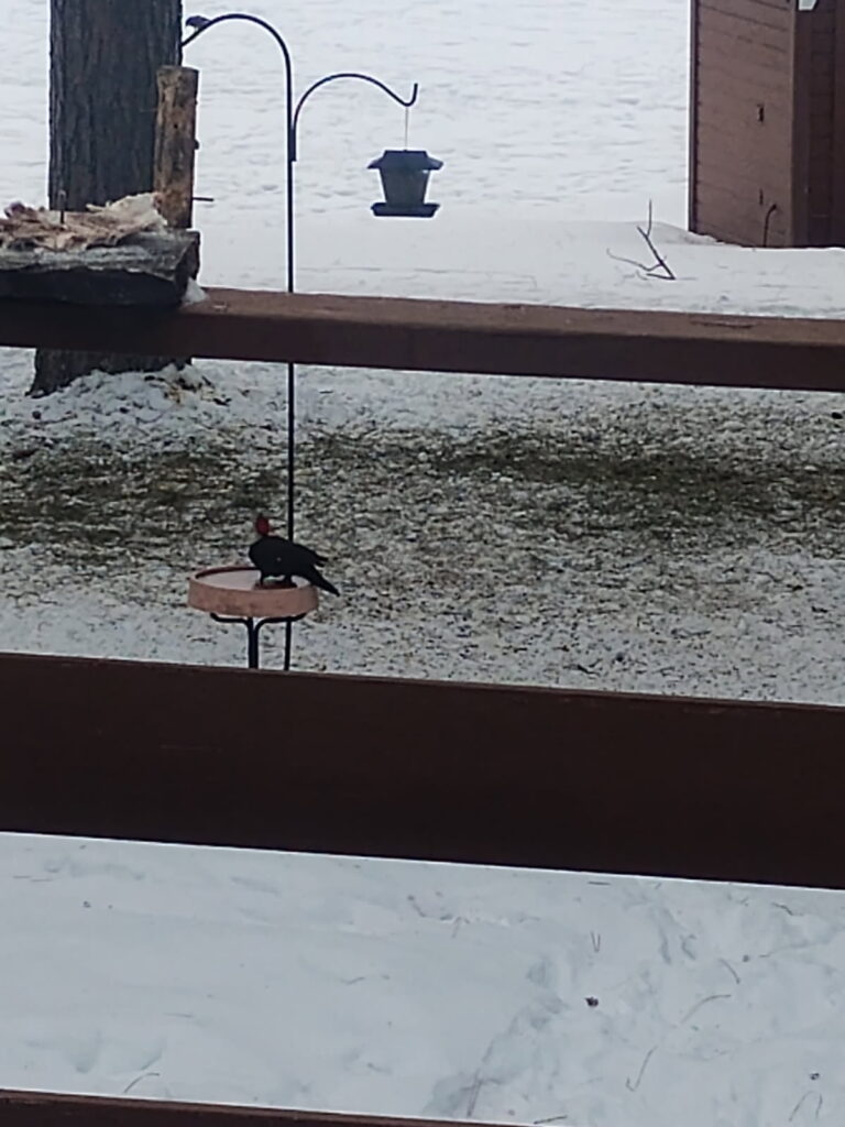 HCS is quite busy these days, Rook has spent many mornings tearing down the hill to the lake and checking out his terrain here. The yard is trampled by his paws, many deer prints, birds and other critters. As I write, Paul the Pileated is on the Peanut Butter eating breakfast. Those Giants are awesome. If you gander below, you will see where one of them, I guess Paul is standing in the waterer. Heck its got to be Paul, if it is Paula, then she would don a bathing suit or skivvies to keep her figure covered, oh my!