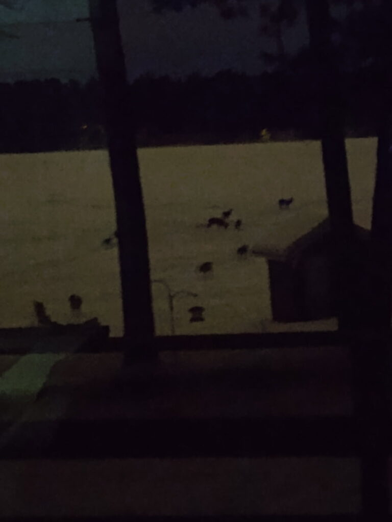 Birds are busy at the feeders, Blue Jays, Woodpeckers, Deer, Elephant and Giraffes are wandering thru the bush, the fron yard is littered with Gnu’s now crossing the road. I wonder what is tasty over there, maybe go check it out.